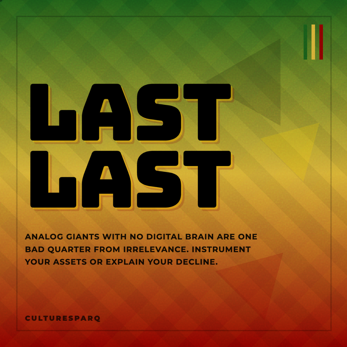 Word on the Streets: If your business relies on "bending iron" or "bricks and mortar" without a feedback loop, you’re one bad quarter away from a "Last Last" situation.