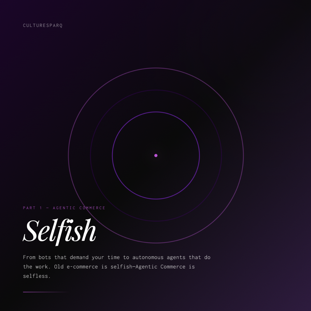 Word on the Street: Old-school E-commerce is "Selfish"—it demands the user’s time, attention, and labor. Agentic Commerce is "Selfless"—the Agent takes the burden.